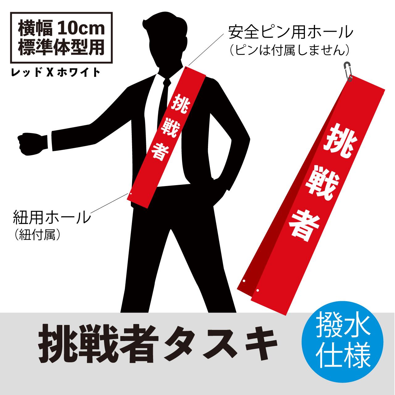 【挑戦者タスキ】選挙活動にわたらない、政治活動に使用出来る「挑戦者たすき」。選挙前(告示前)までの期間にもご利用いただけます。もはや必需品の一つと言っても過言ではないアイテムです。納期は最大3営業日以内で出荷となります。